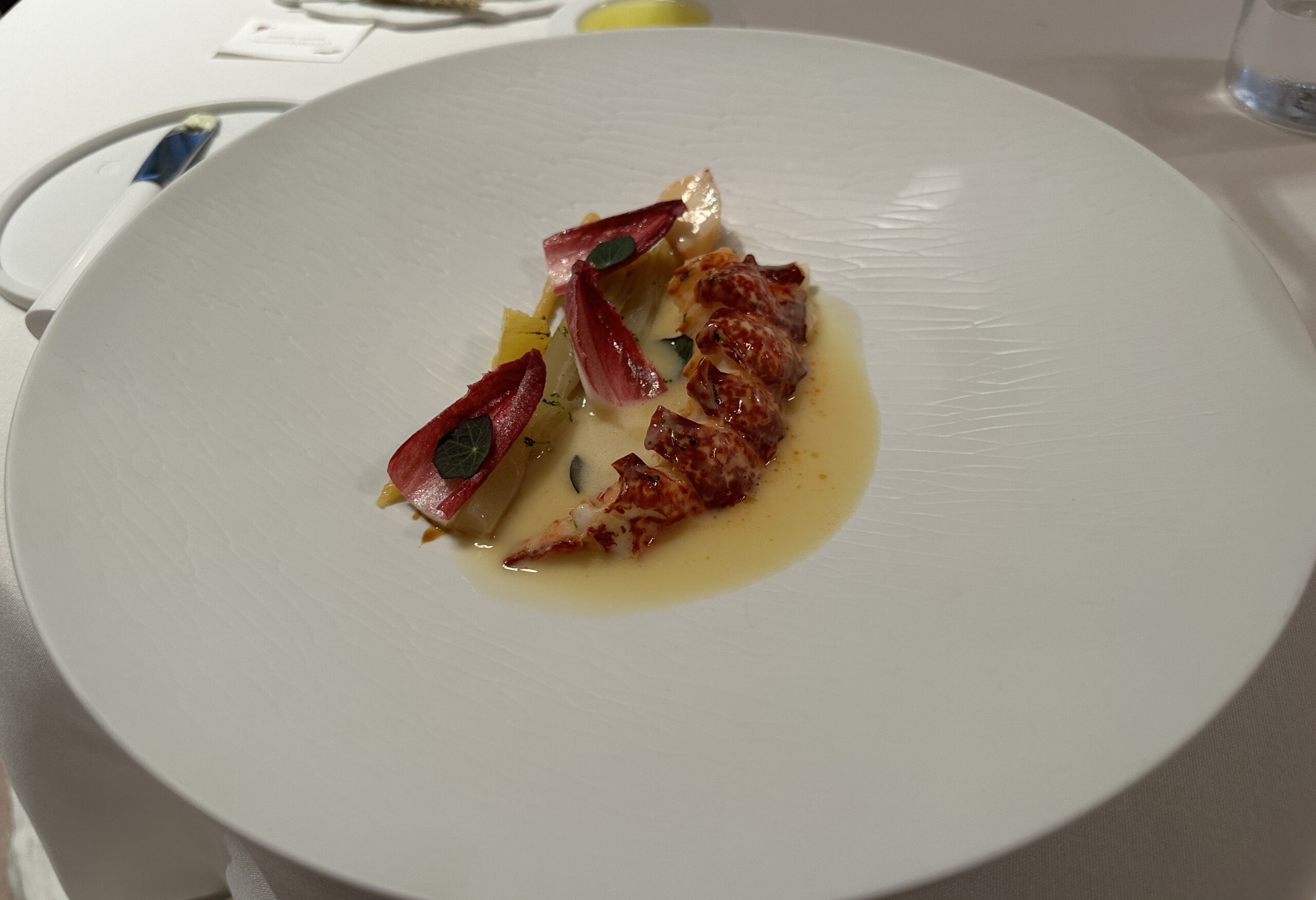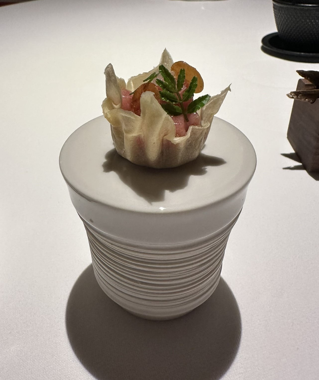 The Balfego Tuna, Roscoff-Onion, Chicken Skin arrived as a tartlet filled with rich, fatty tuna. The Canale l Norway Lobster l Perigod Truffles was particularly memorable: the traditionally sweet pastry cleverly transformed into a savory vehicle, topped with generous black truffle shavings and subtly filled with lobster meat, retaining just a hint of sweetness.